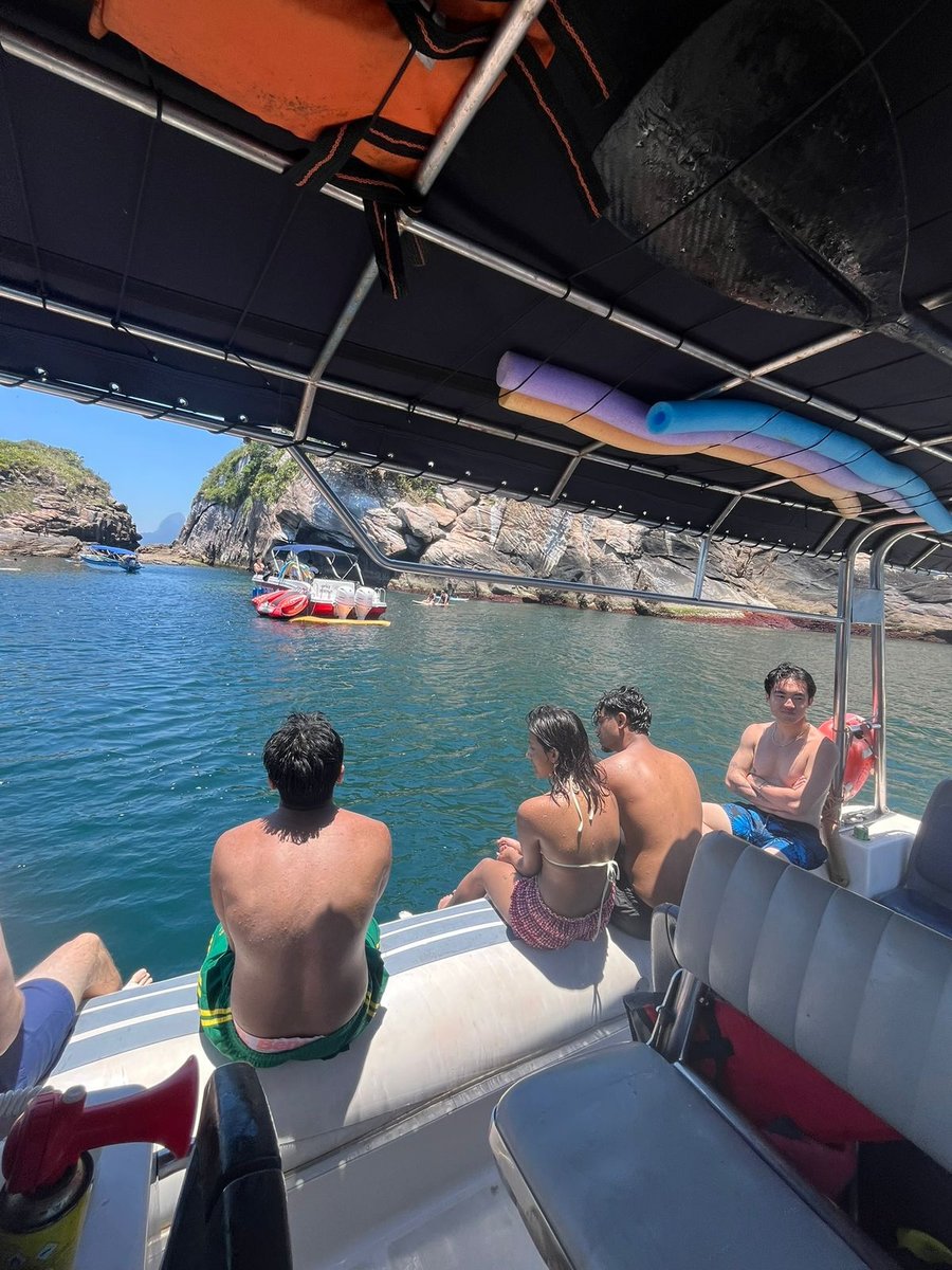 Estão inclusos equipamentos de snorkeling, tapete flutuante, macarrão, som com bluetooth, cooler, coletes esportivos e banheiro a bordo.