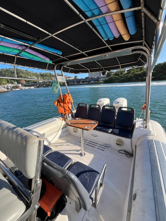 Ideal para reunir a família, grupos grandes, aniversários e despedidas de solteiro, essa embarcação oferece conforto e espaço, sendo especialmente indicada também para pessoas de mais idade. Conta com banheiro e mesa a bordo, proporcionando mais comodidade durante todo o passeio.